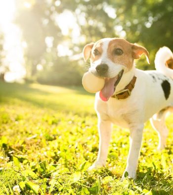 cachorro sem pulgas brincando no gramado